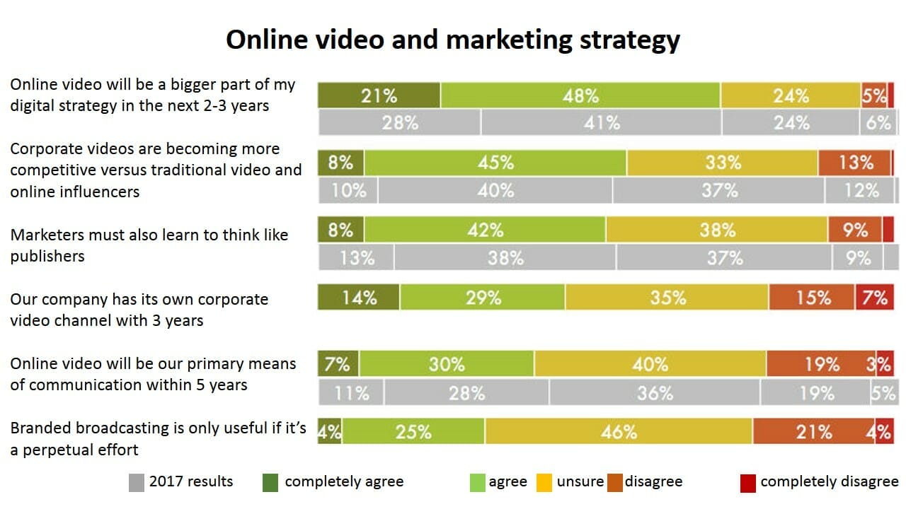 Where online video was still considered to be a nice “bonus” with an unclear goal in early editions of the poll, the latest results for 2017 show that both marketers and consumers see the impact of video, whether those are personalized, interactive, on-demand or vlogging and social videos.